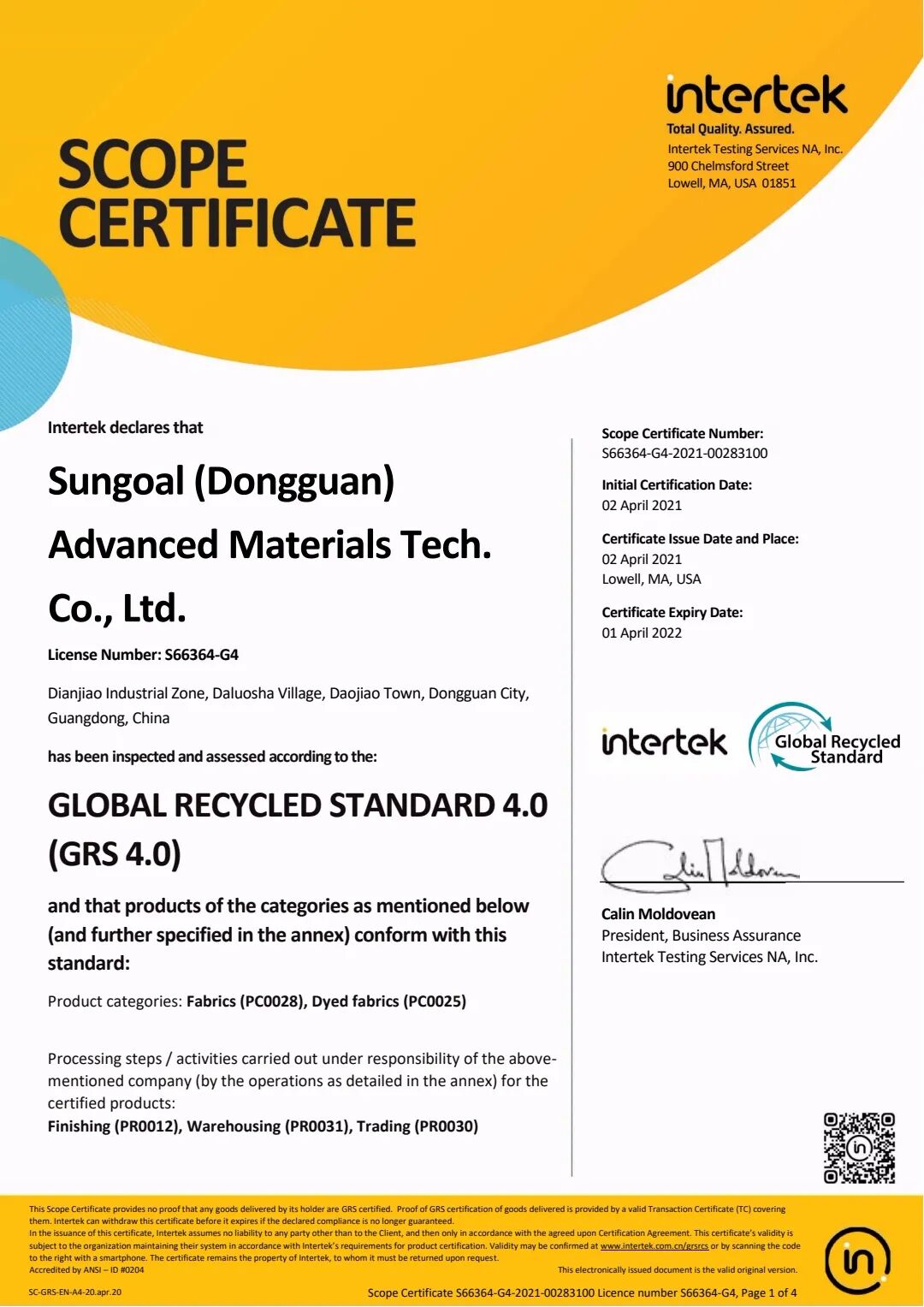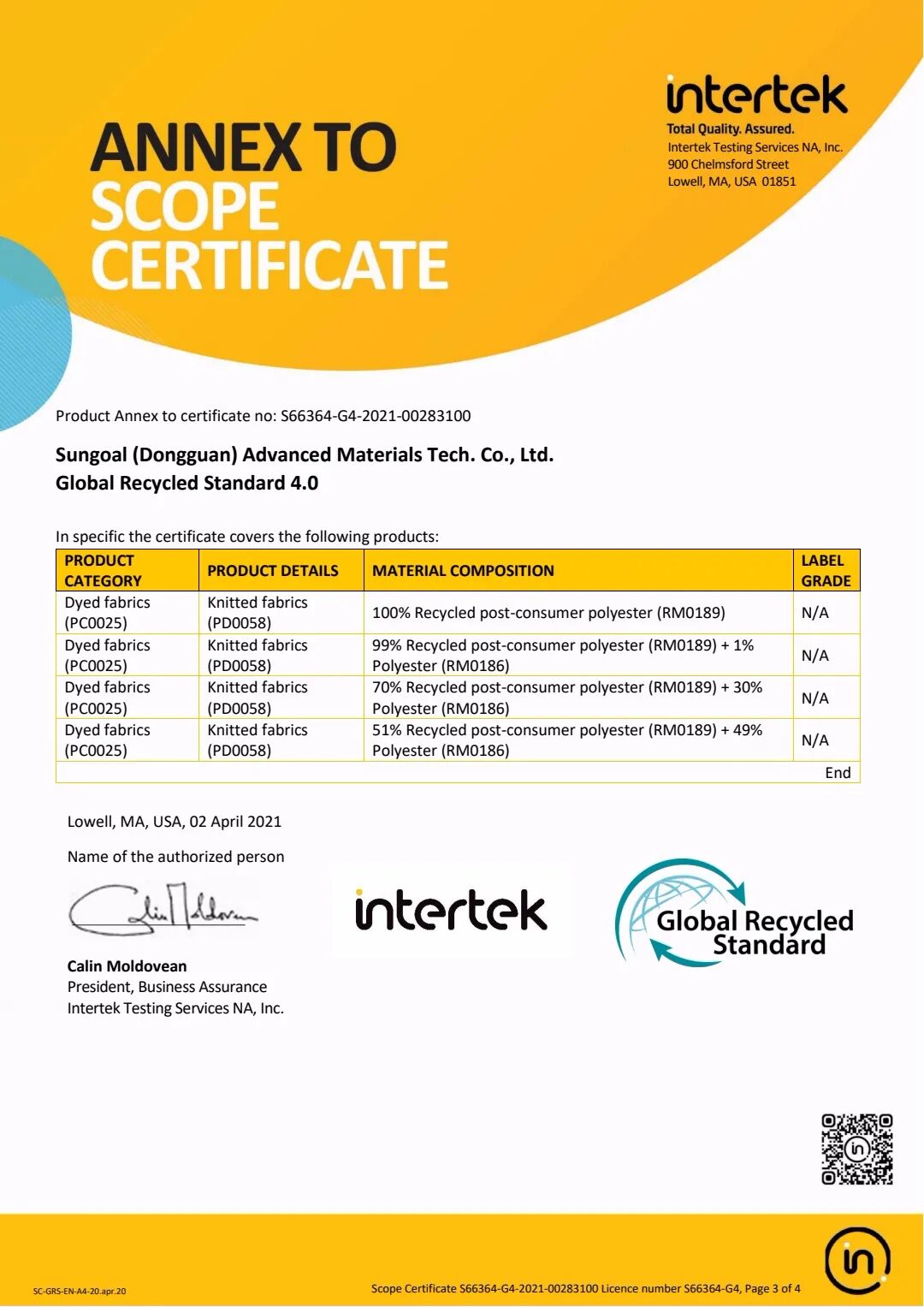 如果您需要找回收材料,可选择找“盛国”已取得了GRS证书!
